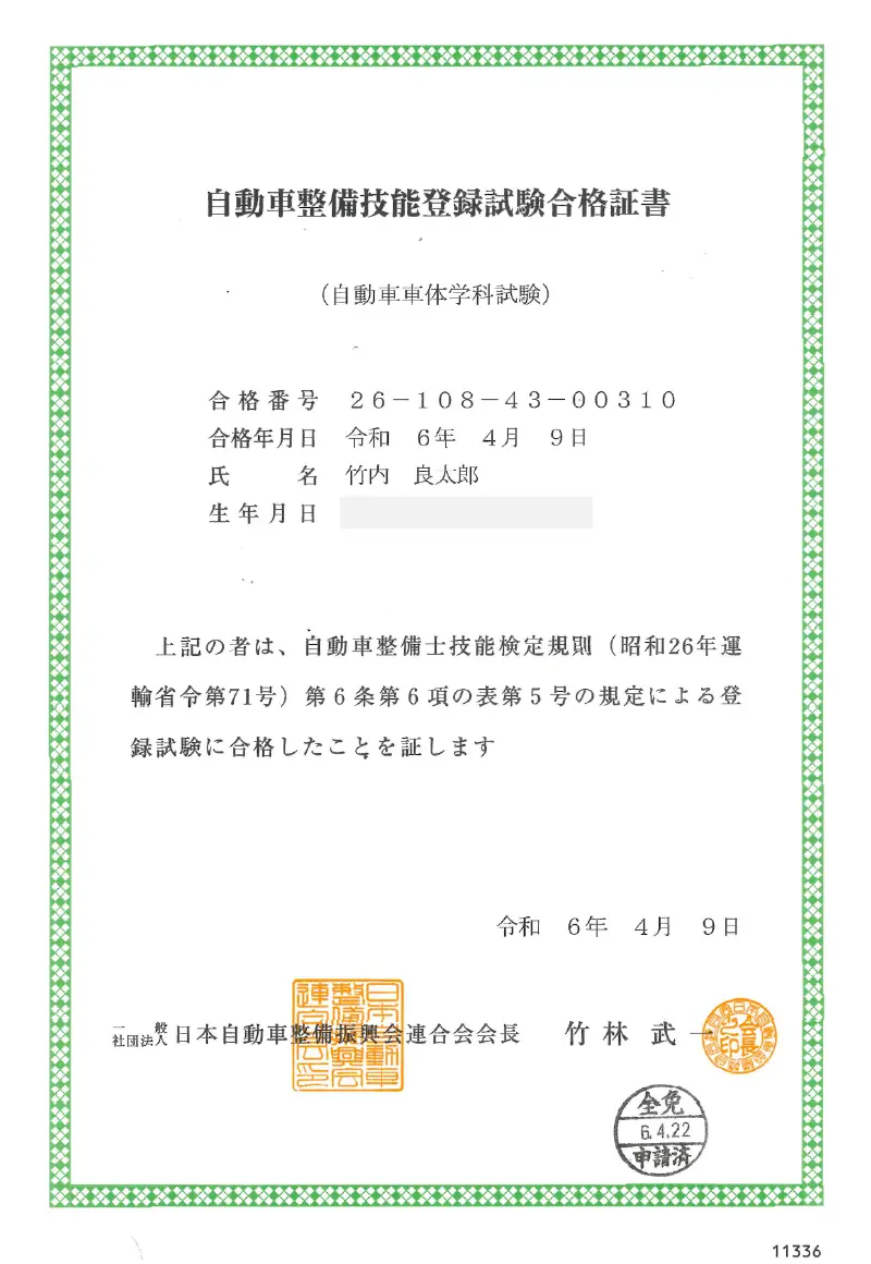 【保有資格】自動車特定整備の認証工場 タイヤ空気充てん作業特別教育修了工場